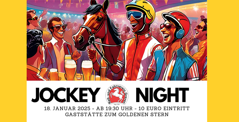 Wir freuen uns, euch zu unserer aufregenden Jockey Night einzuladen! Diese Party wird das Highlight des Jahres und wir können es kaum erwarten, sie mit euch zu feiern!