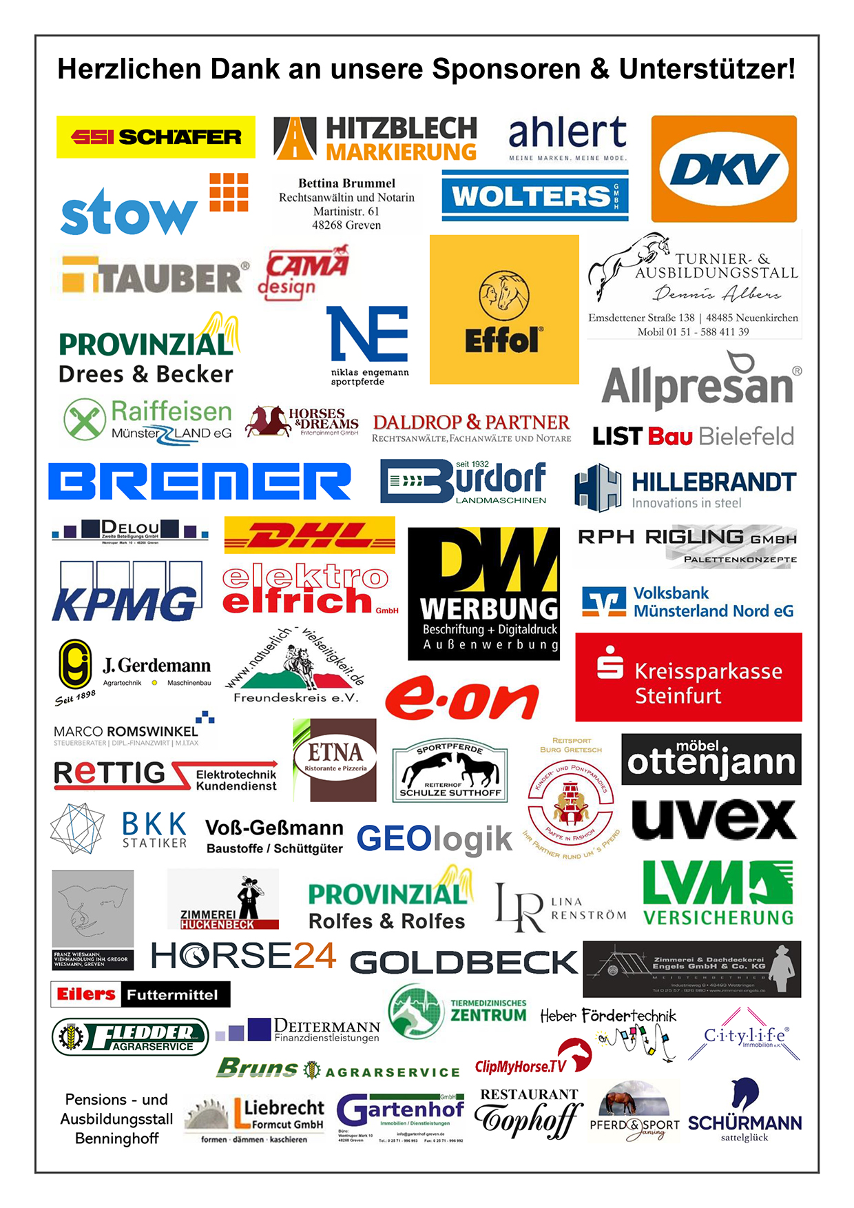 Im Folgenden finden Sie eine Aufstellung aller Sponsoren und Unterstützer. Wir würden uns freuen, wenn Sie diese Unternehmen für etwaige Aufträge in Hinterkopf behalten…